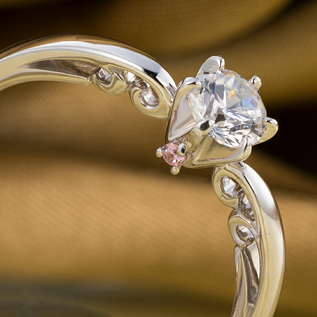 婚約指輪は、プラチナ、イエローゴールド、ピンクゴールド、ホワイトゴールドの4種類の素材からお選びいただけます。オプション・カスタマイズを選択のボタンよりお好みのデザインにカスタマイズしてください。
