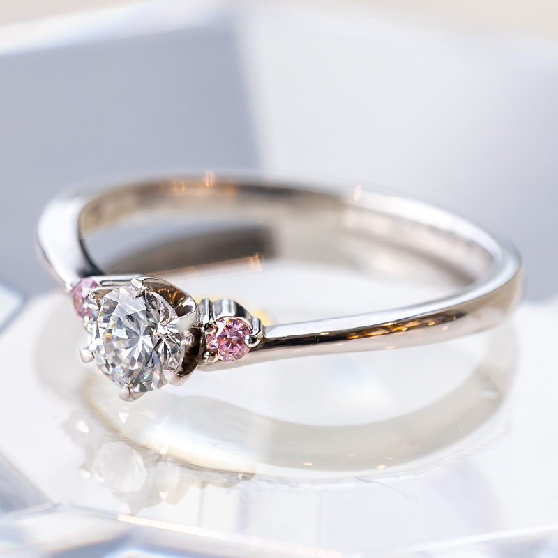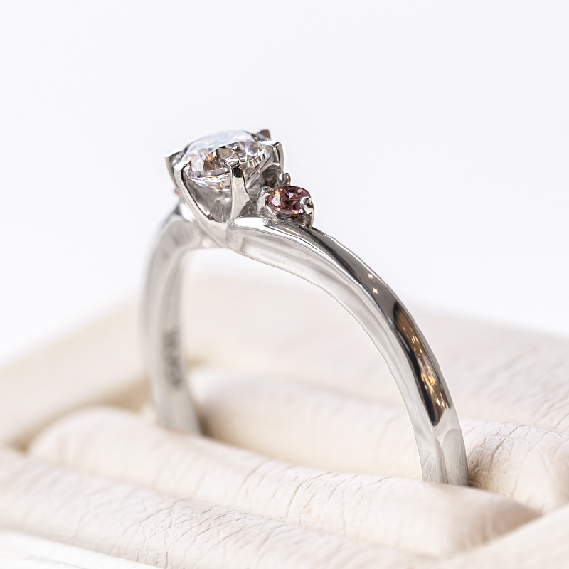 婚約指輪は、プラチナ、イエローゴールド、ピンクゴールド、ホワイトゴールドの4種類の素材からお選びいただけます。オプション・カスタマイズを選択のボタンよりお好みのデザインにカスタマイズしてください。