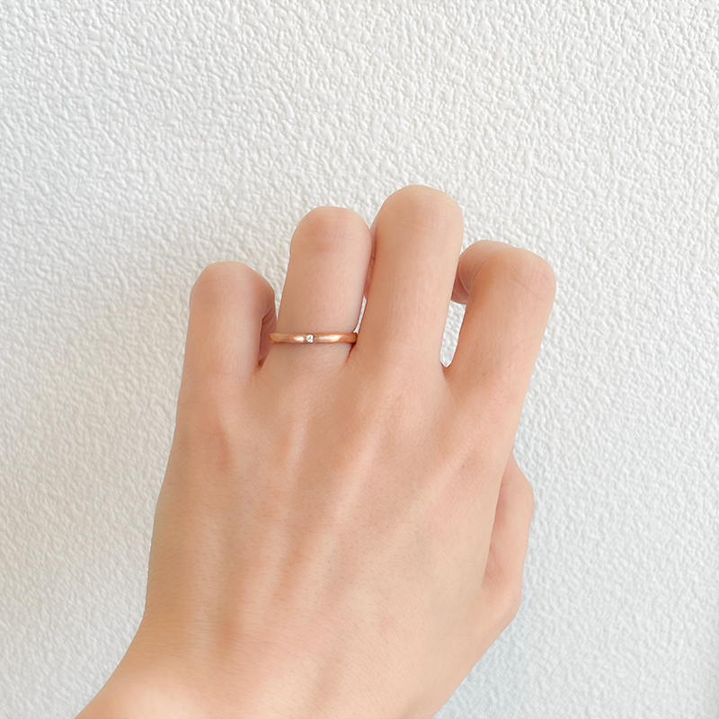 一方で、ピンクゴールドは日本人の肌色に含まれる「赤み」に近いため、指元に自然に溶け込みます。