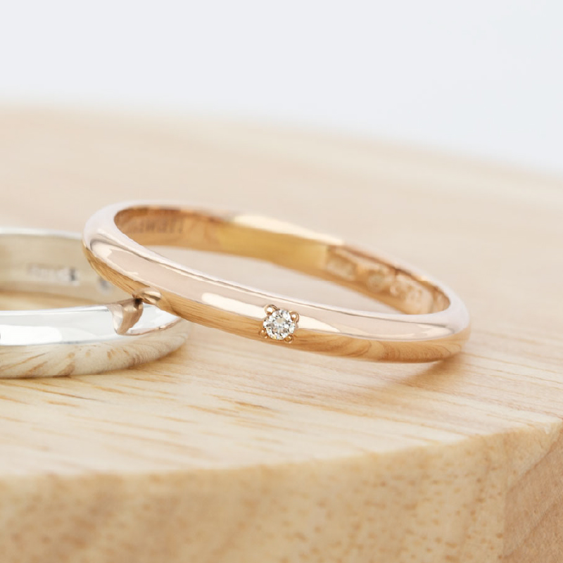 ピンクゴールドの持つ温もりは、手を取り合うお二人の体温を感じさせてくれる特別な色です。