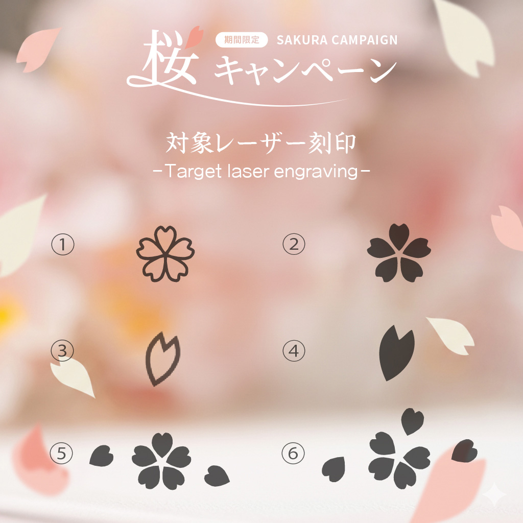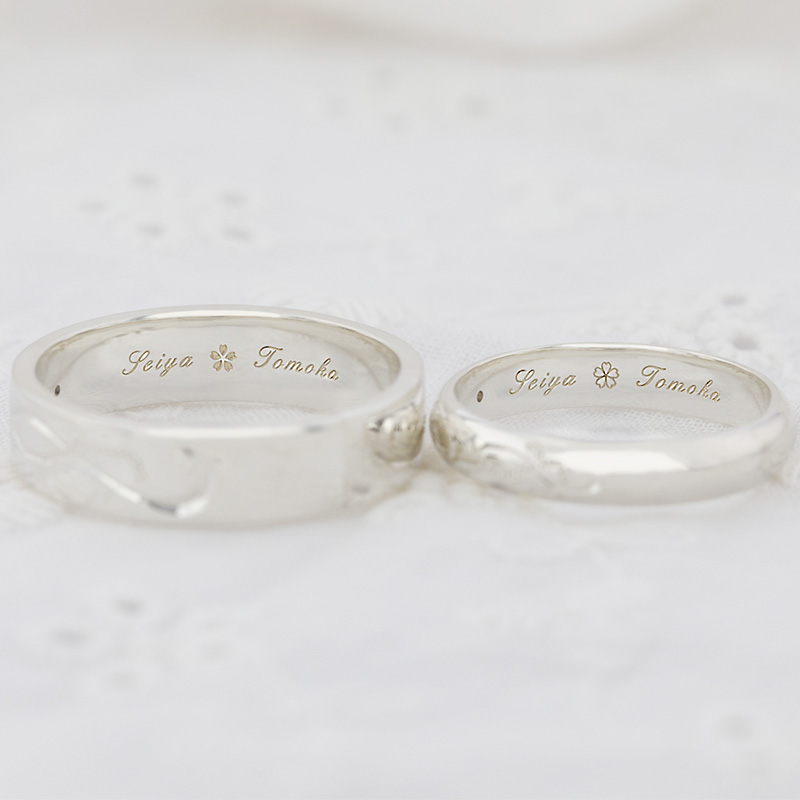 お好みの桜モチーフ(全6種類)を指輪の内側にレーザー刻印いたします。