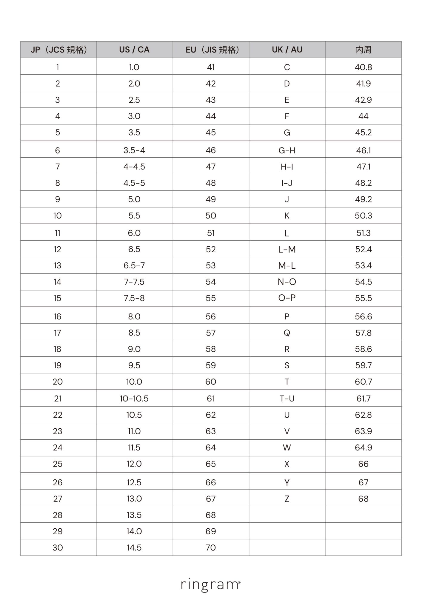 ② Check the Japanese size.