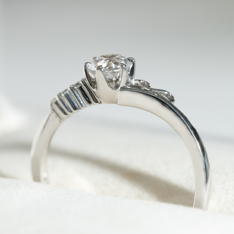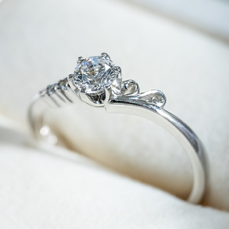 <p>婚約指輪は、プラチナ、イエローゴールド、ピンクゴールド、ホワイトゴールドの4種類の素材からお選びいただけます。オプション・カスタマイズを選択のボタンよりお好みのデザインにカスタマイズしてください。</p>